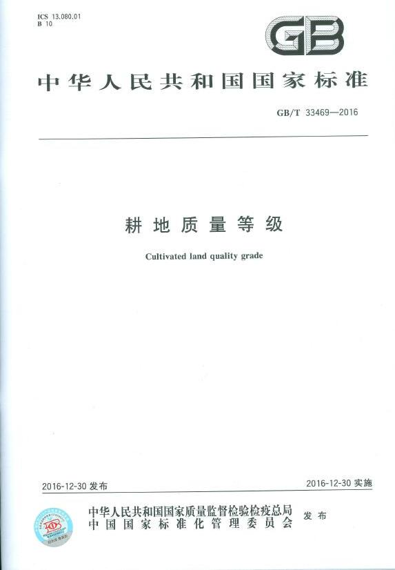 《耕地质量等级》(GB/T 33469-2016)国家标准近日经国家质检总局、国家标准委批准发布,于2016年12月30日起正式实施。这是我国首部耕地质量等级国家标准,为耕地质量调查监测与评价工作的开展,提供了科学的指标和方法。