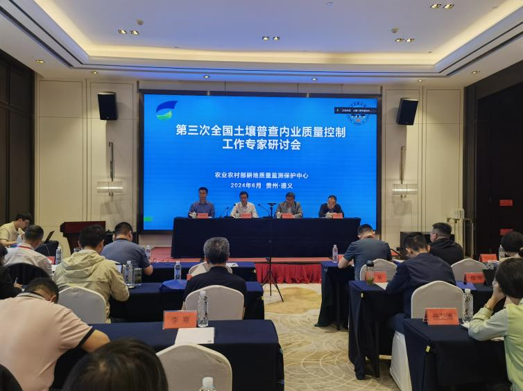 为全面总结第三次全国土壤普查内业测试化验和质量控制工作,研究部署2024年内业测试化验和质量控制重点工作任务,6月3—4日,农业农村部耕地质量监测保护中心在贵州省遵义市组织召开第三次全国土壤普查内业质量控制工作专家研讨会,全国土壤普查领导小组办公室副主任、内业工作组组长、农业农村部耕地质量监测保护中心主任谢建华,贵州省农业农村厅乡村振兴督查专员罗颖旭出席会议并讲话,会议由内业技术组组长、农业农村部耕地质量监测保护中心总农艺师马常宝主持。