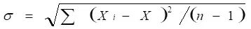 此时,标准偏SD(又可以用σ表示)可由下式求得:
